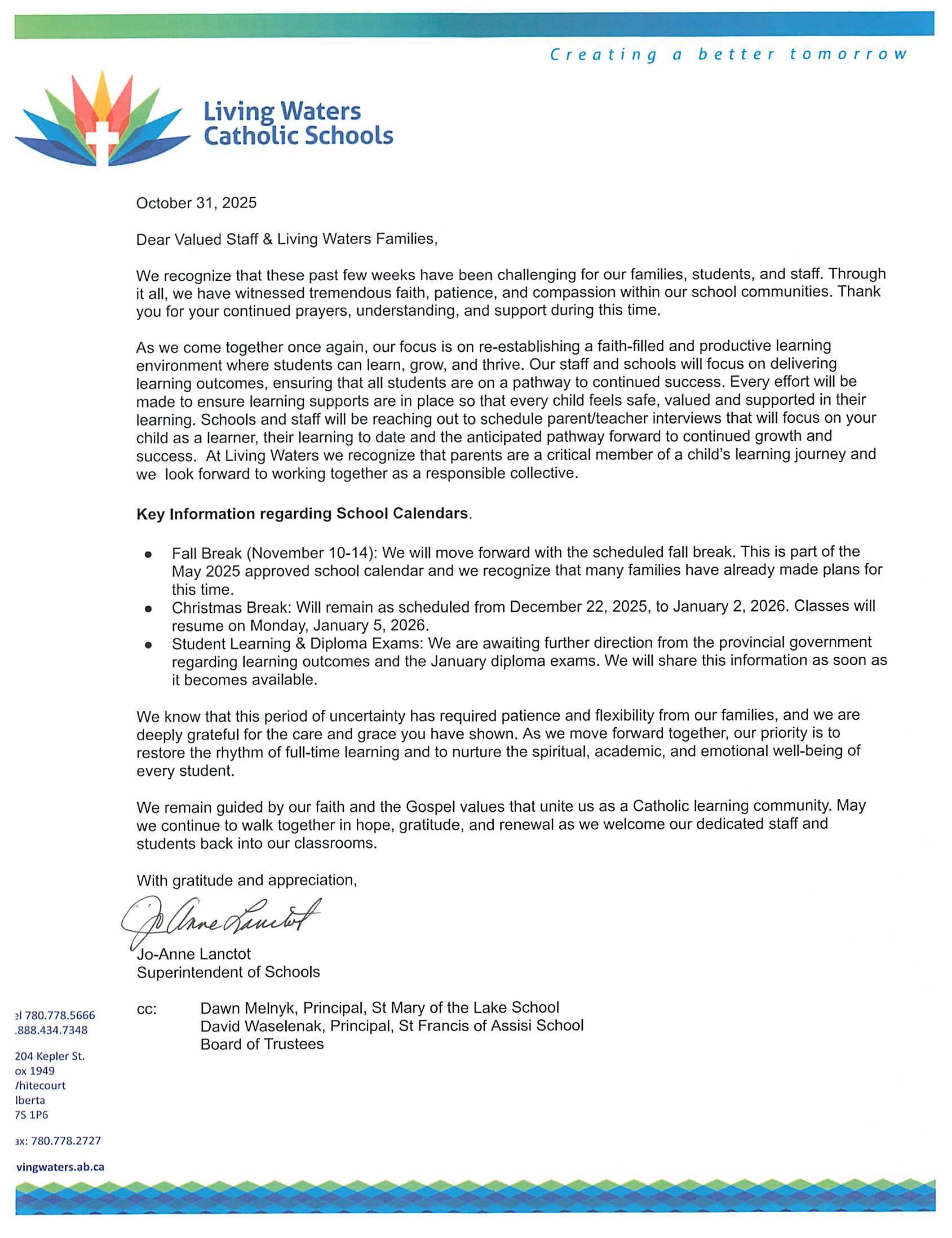 Letter to Parents